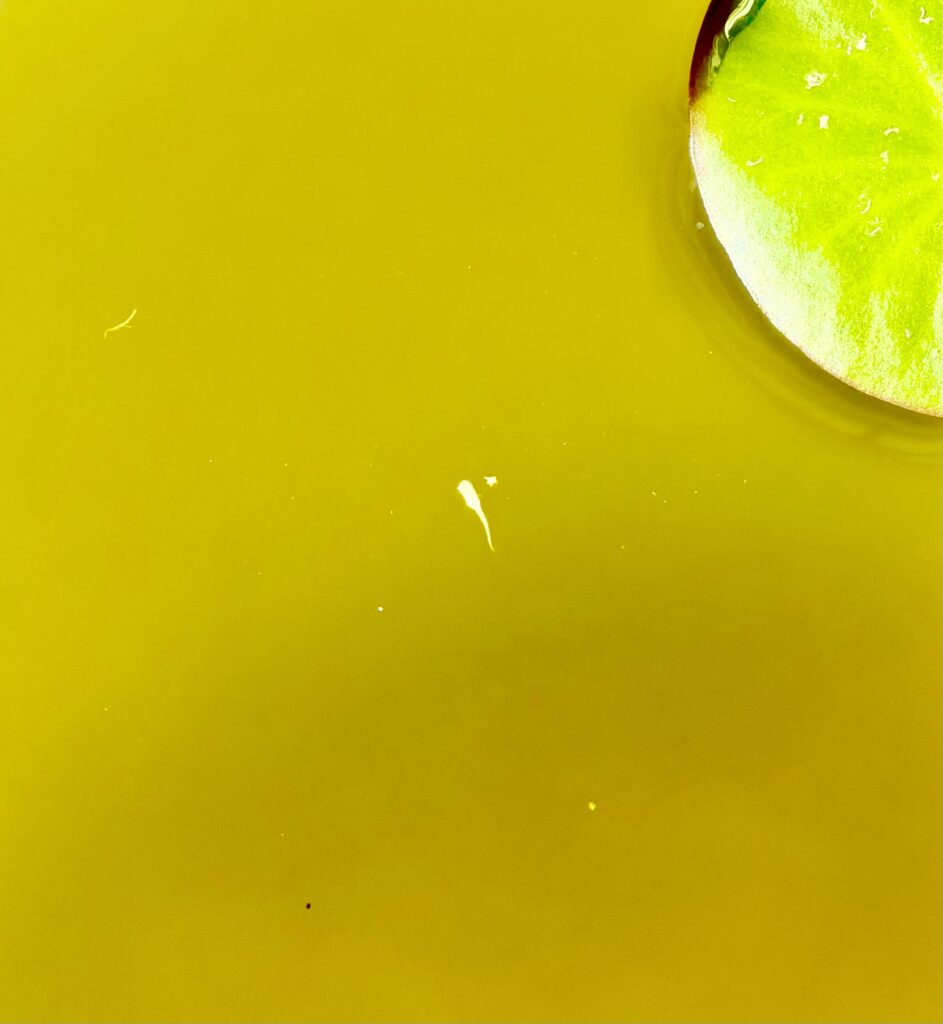 グリーンウォーターは「生き物」です。ある日突然、プランクトンが寿命を迎えて死滅し、水が茶色く濁る「崩壊」が起きることがあります。こうなると一気に水質が悪化するため、日々の観察が欠かせません。飼育容器に雨水が入ると植物プランクトンが水底に枯れ落ちてしまい水質を悪化させますので、雨水には注意です。