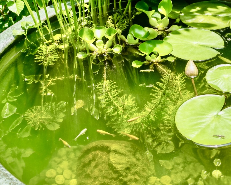 私はベランダでグリーンウォーターの睡蓮鉢と、赤玉土を入れたクリアウォーターのプラ容器の2種類でメダカを育てています。「室内ではクリアウォーターで鑑賞を楽しみ、ベランダの稚魚育成はグリーンウォーターで!」という二刀流もおすすめです。